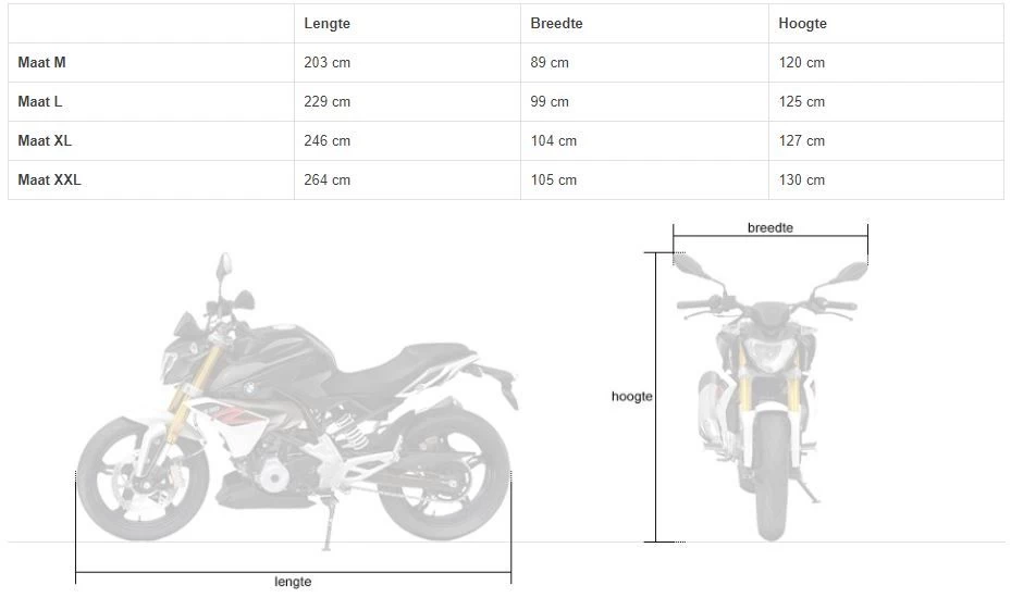 De beschermhoes beschikt over slotgaten om de hoes aan de motor op slot te kunnen zetten en is verder voorzien van een stevige elastische zoom en een verstelbare kliksluiting die voorkomen dat de hoes wegwaait bij hardere wind. Condens, dat in sommige situaties ontstaat, kan ontsnappen door de ventilatieflappen bovenin de hoes.
