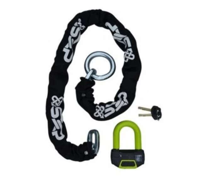 ART4 goedgekeurd kettingslot van 180 centimeter. Voorzien van een lus aan het uiteinde, waar het bijgeleverde remschijfslot aan gemonteerd kan worden.